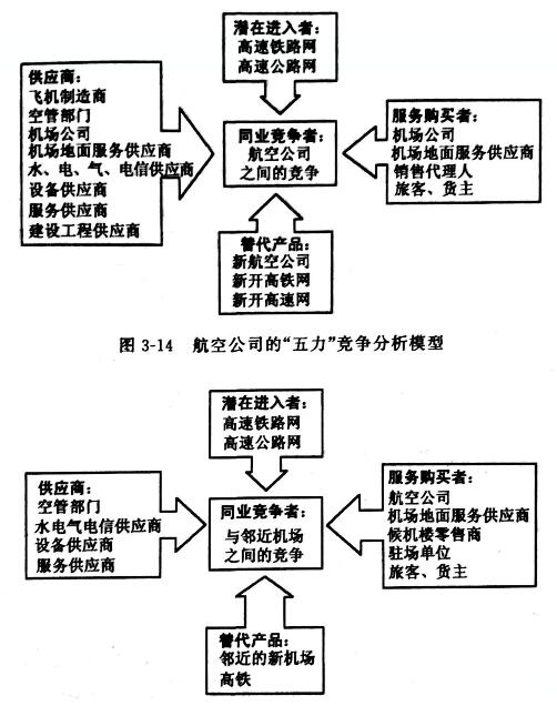 在民航運(yùn)輸市場(chǎng)中,對(duì)航空貨代公司和機(jī)場(chǎng)帶來(lái)共同威 脅的主要潛在進(jìn)入者是地面交通;對(duì)航空貨代公司而言,另一類競(jìng)爭(zhēng)者則是來(lái)自國(guó)內(nèi)或 者國(guó)外的航空貨代公司;對(duì)機(jī)場(chǎng)而言則是鄰近的新機(jī)場(chǎng)或改擴(kuò)建后的機(jī)場(chǎng)。