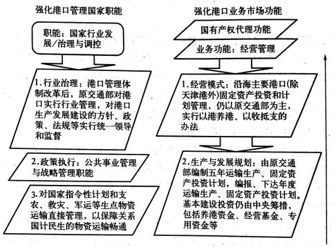 政府與市場業(yè)務(wù)關(guān)系及變革的重點,港口產(chǎn)權(quán)分解與代理職能:市場主體功能發(fā)揮不暢我國的港口治理縣看很強的準(zhǔn)公共設(shè)施特點。國家對于這種資源性所看,政策上執(zhí)行國家戰(zhàn)略與政策的方針。所以,國家對于國際物流港口等設(shè)施的所有權(quán)的職能上總體劃分為執(zhí)行公共事業(yè)與經(jīng)濟戰(zhàn)略兩方面的政策,經(jīng)濟戰(zhàn)略成為政府干預(yù)的重點?;诎l(fā)揮港口的功能的目標(biāo),國家在所有權(quán)基礎(chǔ)上又采取了商業(yè)代理行為來扮演市場主體的角色。港口作為業(yè)務(wù)經(jīng)營的市場主體,目前,基本只具有經(jīng)營權(quán)一項內(nèi)容。